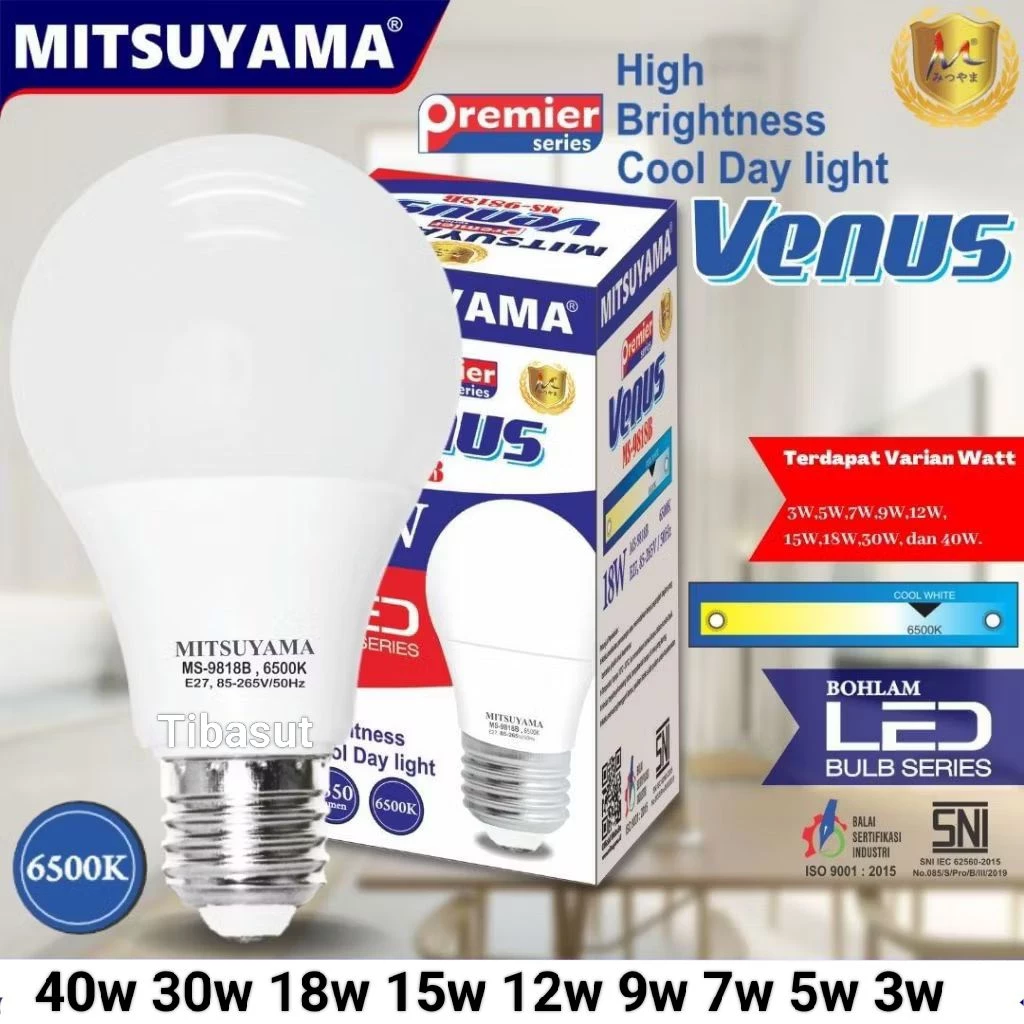 Venus LED adalah lampu bohlam premium dari MITSUYAMA yang menggunakan Samsung LED Chip asli. Hasilnya? Cahaya super terang, awet bertahun-tahun, hemat energi, dan nyaman di mata. Satu kali beli, rumah terang maksimal tanpa boros listrik
